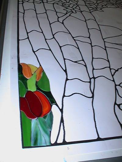that excited about it. I have three different panes of glass for the tree trunks, with varying shades of brown and